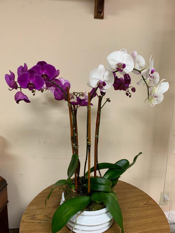 This stunning arrangement features a mix of 15 roses, hydrangeas, alstroemelias, and orchids, accented with an assortment of...