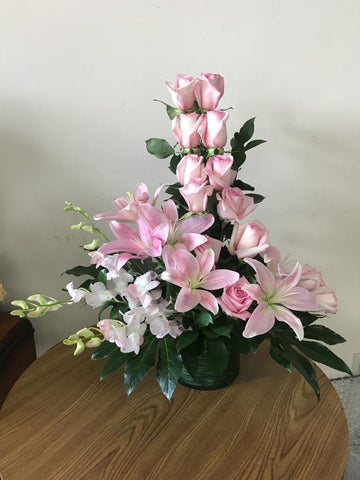GLW101 - PINK ROSES, LILIES AND ORCHIDS